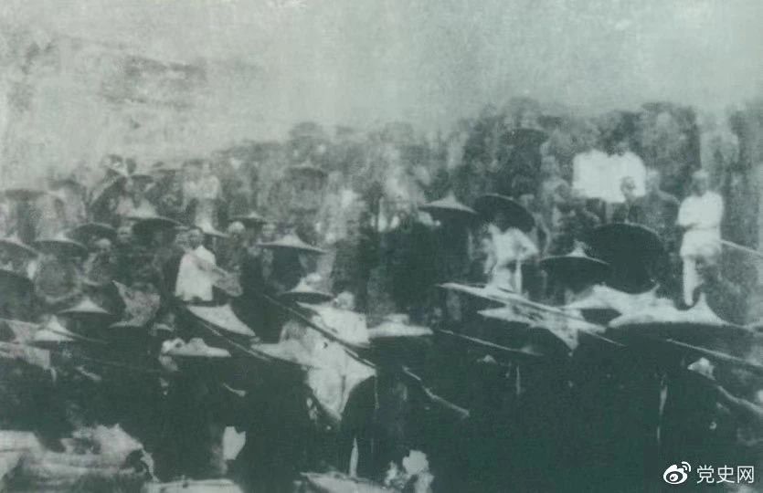 ▲1926年7月9日,國民革命軍開始北伐。兩天后,北伐軍的先頭部隊葉挺獨立團攻占了長沙,然后向武漢進攻。一路上,迅猛發(fā)展的農(nóng)民運動有力地配合了北伐戰(zhàn)爭。在湖南、江西、湖北,農(nóng)民運動越來越引人注目。這是支援北伐戰(zhàn)爭的農(nóng)民自衛(wèi)軍。